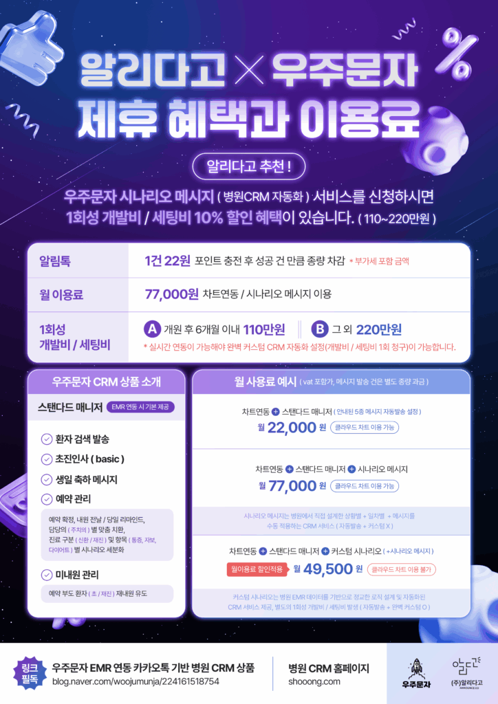 👉 우주문자 EMR 연동 카카오톡 병원 CRM 소개