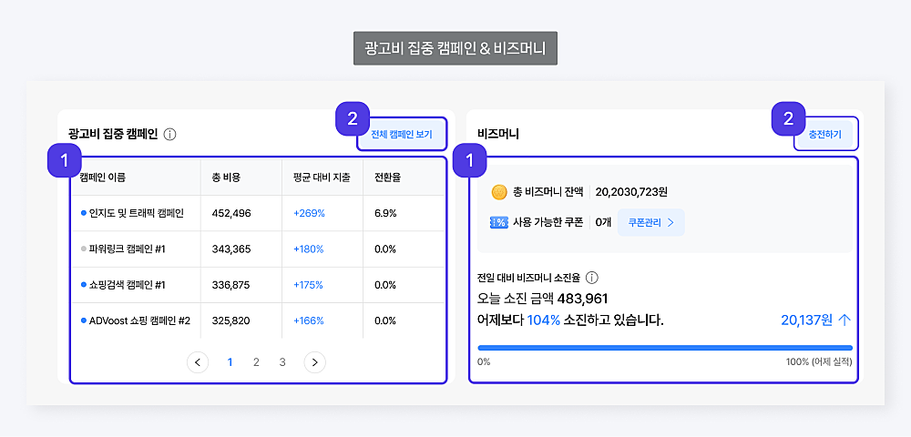 광고비 집중 캠페인 & 비즈머니
