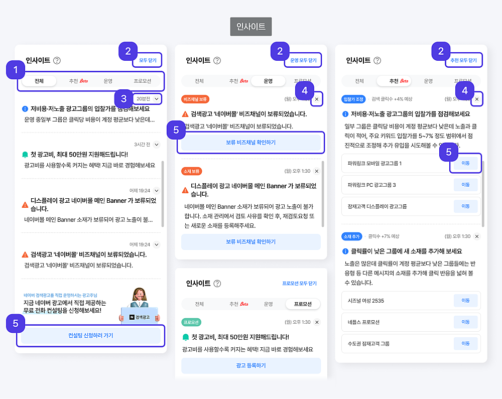 광고 운영 현황을 바탕으로 나의 광고 관리에 도움을 주는 인사이트를 제안합니다.